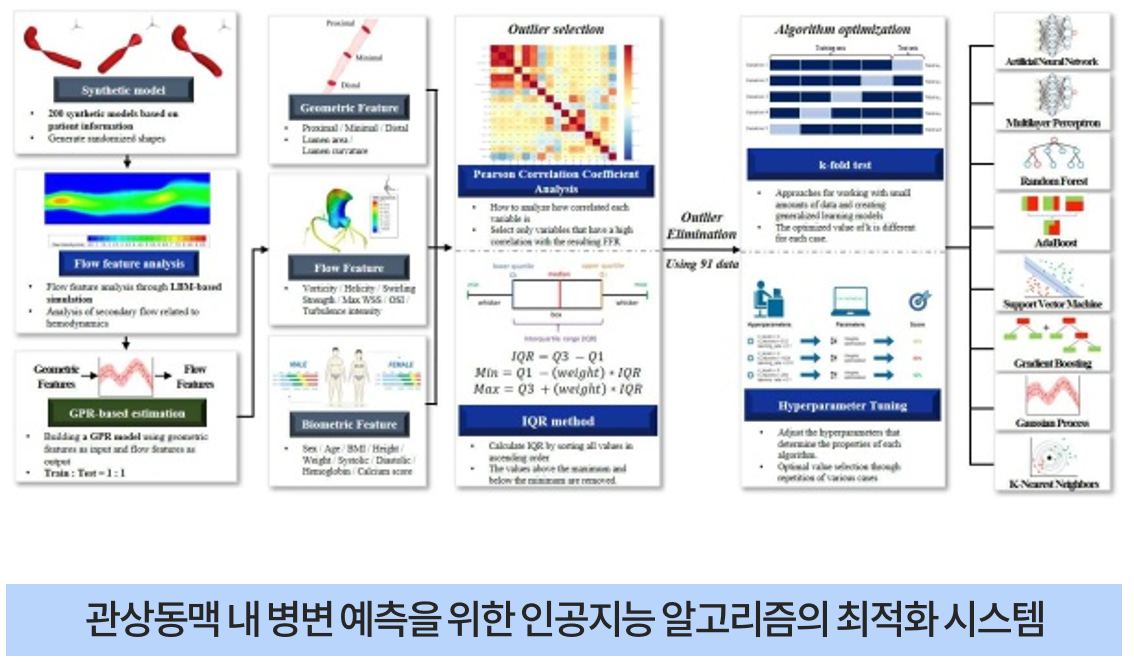 이상치 제거와 교차 검증을 통한 데이터 정제, 다수의 인공지능 알고리즘 비교 및 하이퍼파라미터 최적화를 수행하여, 임상적으로 해석이 어려운 ‘그레이존’ 구간(FFR 0.75~0.8)에서도 높은 정확도와 신뢰도를 확보