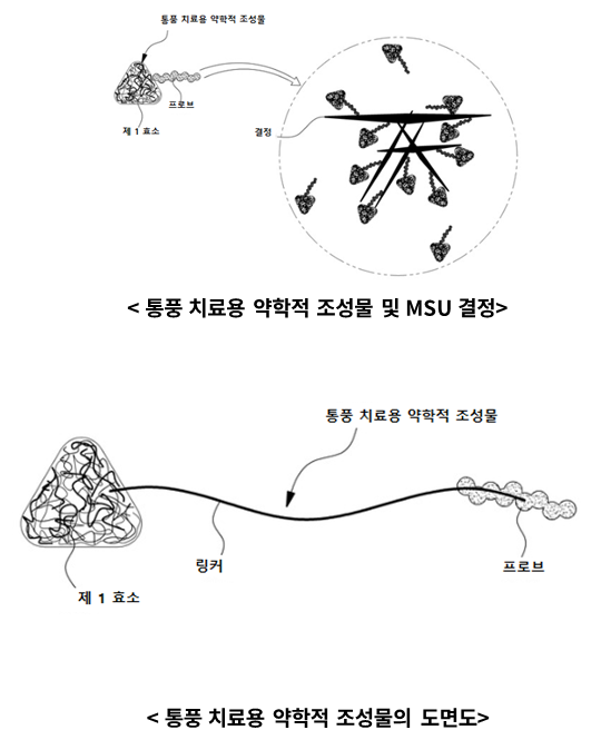 - 그러나, 생활 습관 개선은 오랜 시간이 소요되고, 극적인 효과를 기대하기 어려워 급성 통풍 치료는 불가능하고, 상기 진통제 또는 상기 항염증제를 투여하는 방법은 통풍 치료의 근본적인 해결책이 될 수 없음