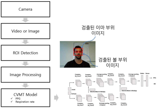- (얼굴 영상 장치) 관심영역을 복소화하여 멀티태스크 모델로 처리함으로써 심박수와 호흡수를 동시에 추정하고, 주변광 환경에서도 안정적으로 동작하며,